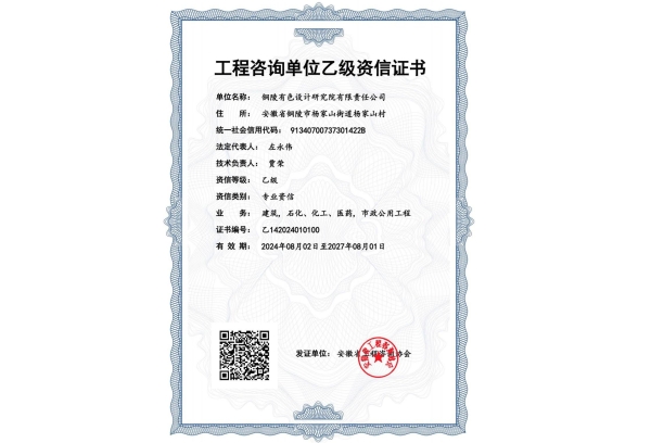 工程設(shè)計(冶金行業(yè)甲級)資質(zhì)證書